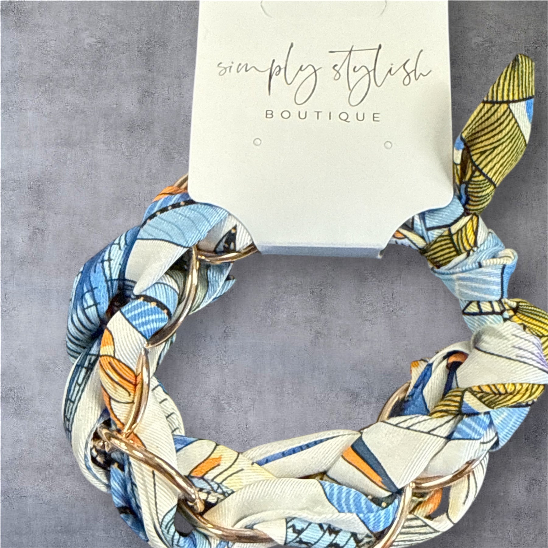 Make a stylish statement with our Linked Luxe Scarf Chain Bracelet, featuring a chic blend of soft scarf detail woven through polished linked chains. This unique mixed-media design brings texture, movement, and shine together for an effortlessly cool look. Perfect for dressing up your everyday outfits or adding a bold touch to a night-out ensemble.
