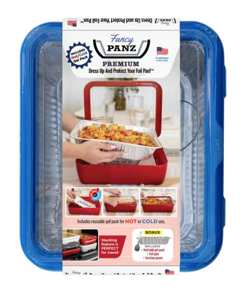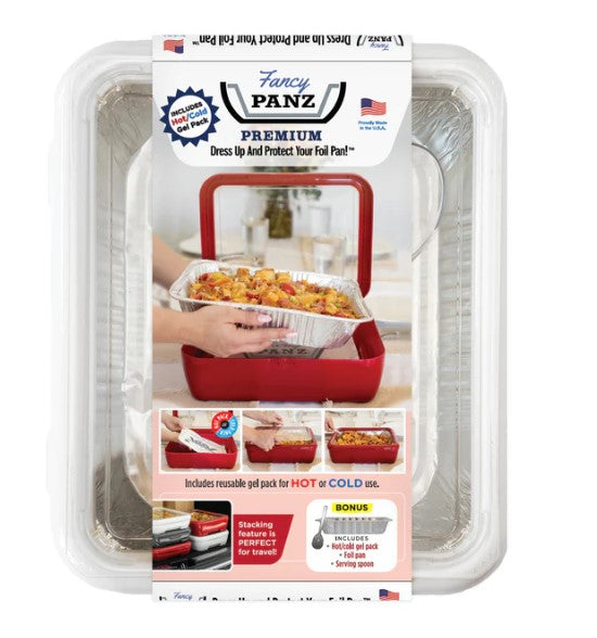 Enjoy all the consciences of a foil pan and dress it up with Fancy Panz!! No more grimy pans to scrub clean, just remove the foil pan and wipe down your Fancy Panz!