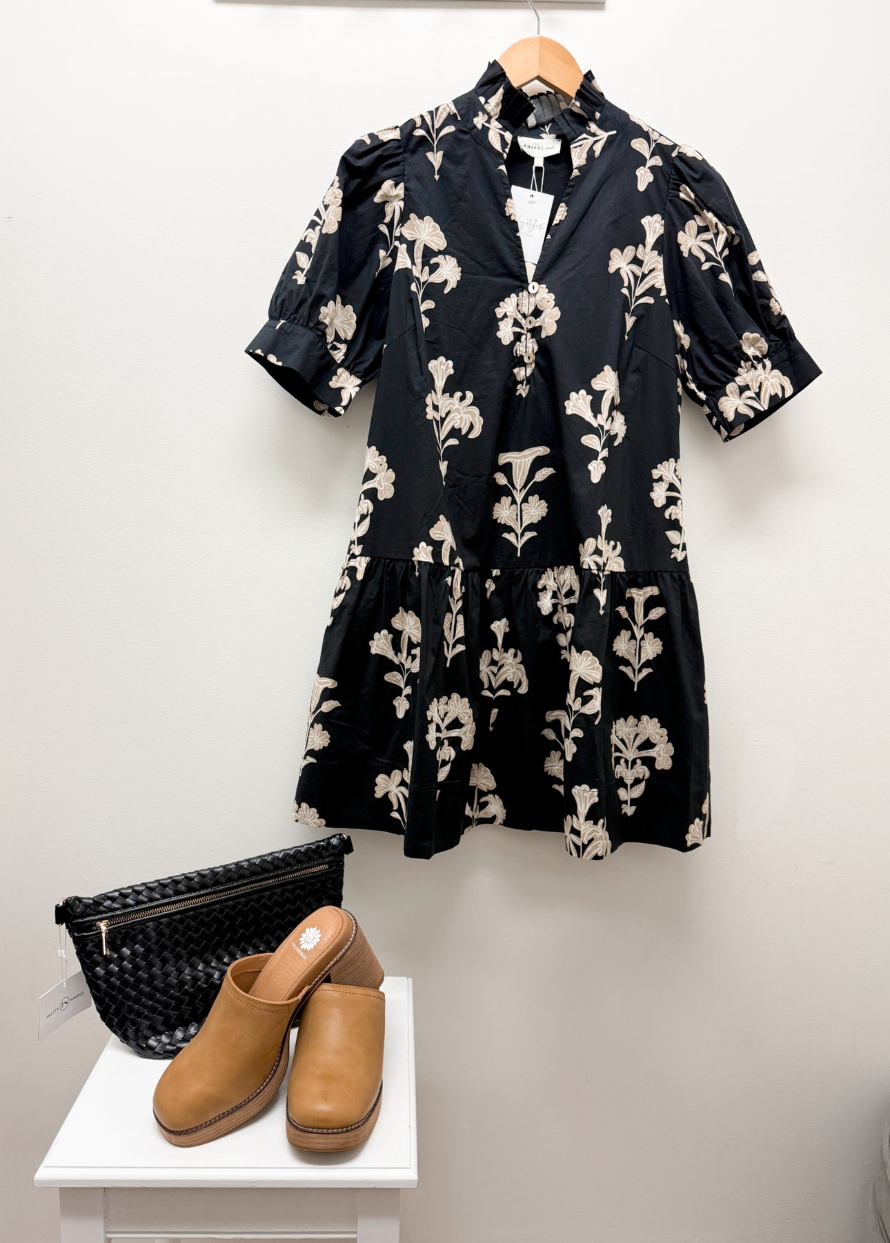 Add a playful touch to your wardrobe with this floral print mini dress. Featuring short puff sleeves, a ruffle hem, and a banded collar with V-neck button closure, it exudes flirty, feminine charm. Complete with side pockets and a lined, non-sheer woven fabric, this lightweight dress is perfect for warm days, casual outings, or weekend get-togethers.