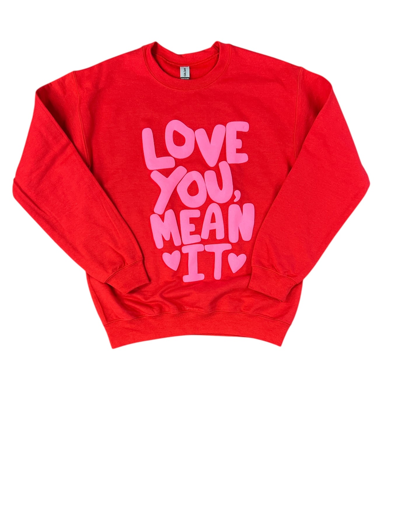 Celebrate love in cozy style with this "Love You Mean It" sweatshirt, perfect for both youth and adults to share heartfelt warmth this Valentine’s Day.