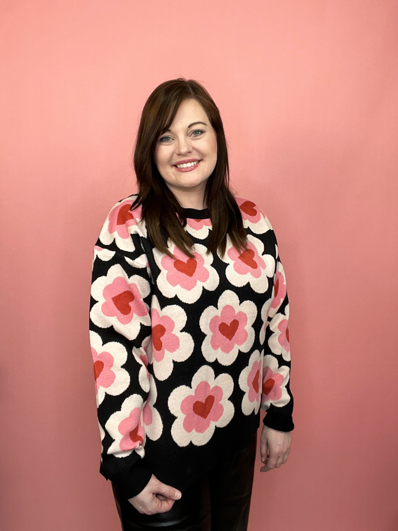 Cozy meets cute in our Jacquard-Knit Sweet Heart Sweater. Featuring an allover heart print, this soft knit pullover has a round neckline, long sleeves, and slightly dropped shoulders for a relaxed, comfy fit. Finished with ribbed cuffs and hem, it’s the perfect piece for layering or adding a touch of charm to your everyday style.